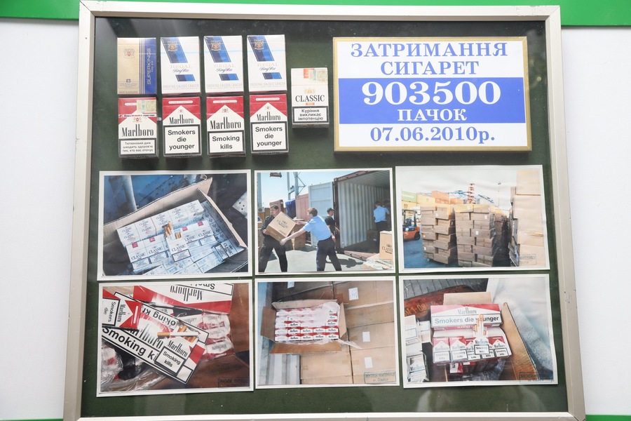 У музейній експозиції – фото реальних спецоперацій, коли великі партії сигарет намагалися завезти морем. Саме морський шлях залишається основним для великих обсягів: контейнери, трюми, складні логістичні ланцюги.